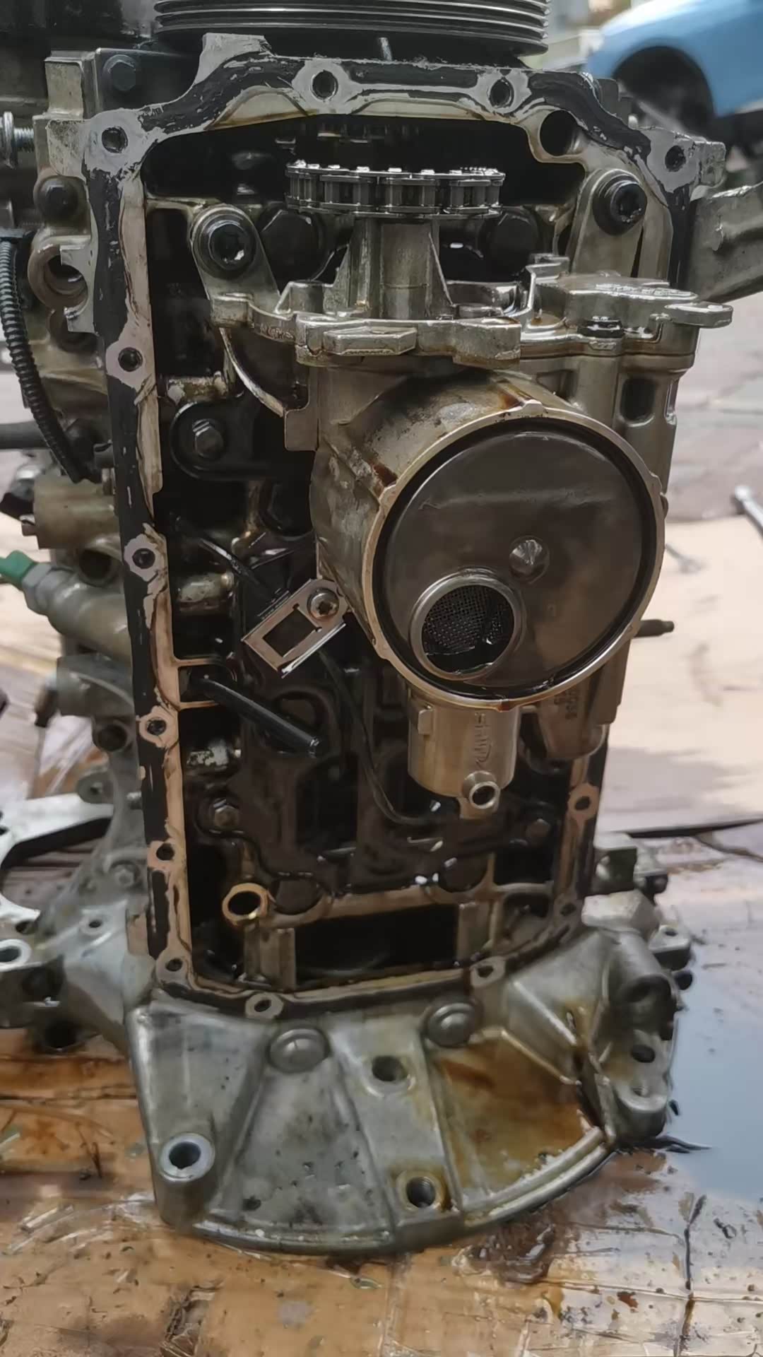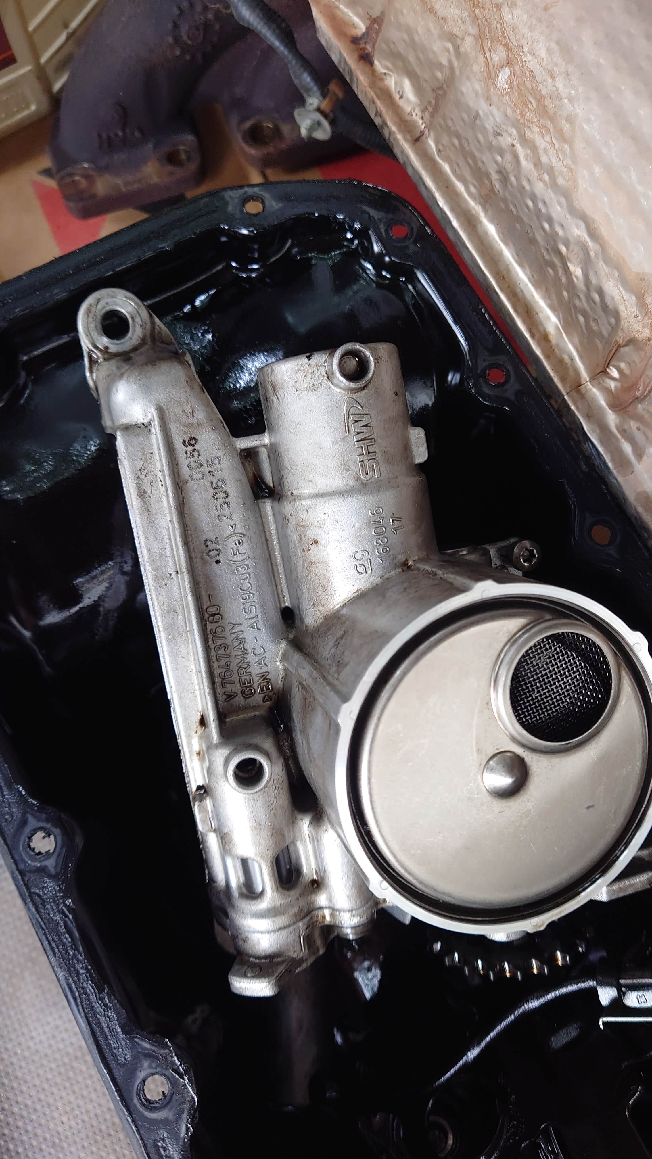 机油泵也用油刷洗刷洗。这个机油泵居然是德国老牌SHW的,这家巴登符腾堡的上市公司专业做各种泵、粉末合金、刹车盘和机床。不过除了机床外,其他的在全球市场上,都被大陆很多企业替代,目前已经沦落到只有1800个员工了。