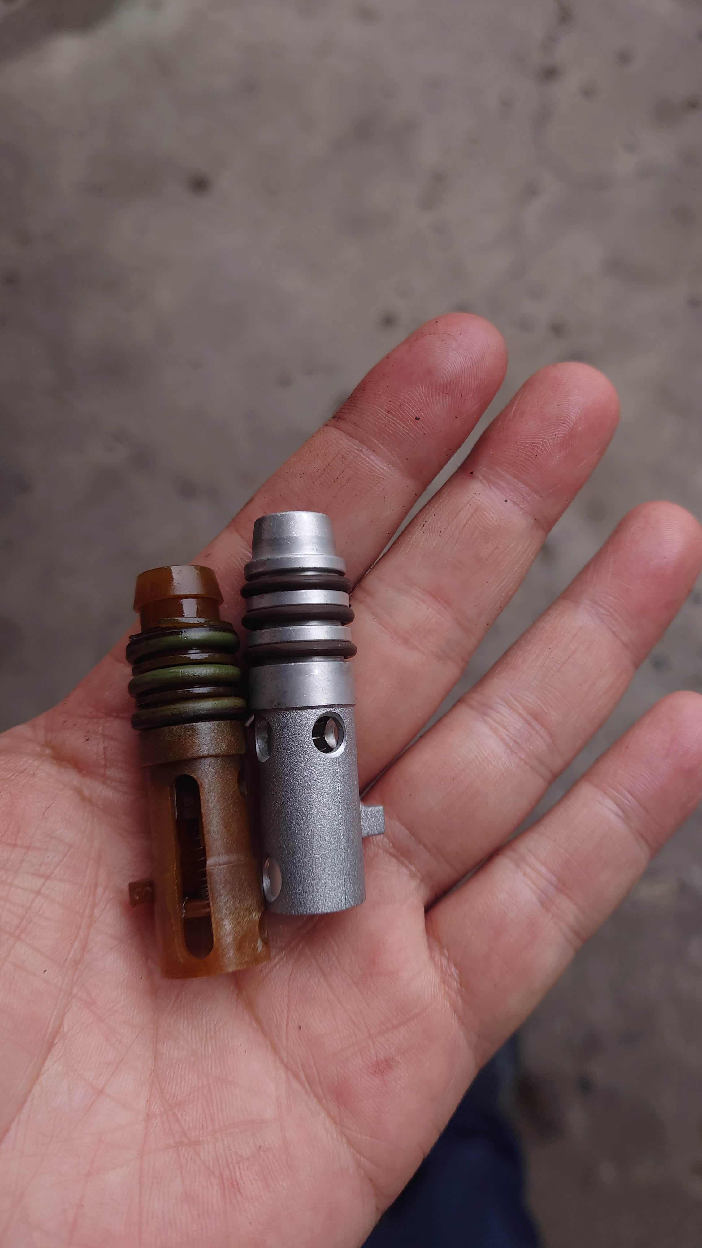 中缸跟缸盖有个机油单向阀,只能油向上泵,不会流下来。不过原车是塑料的,国内改进成铝合金的了,这次一起换了。这个非常不好取出来,又怕断在里面,折腾了十几分钟,塑料的头部和密封圈有老化的痕迹。