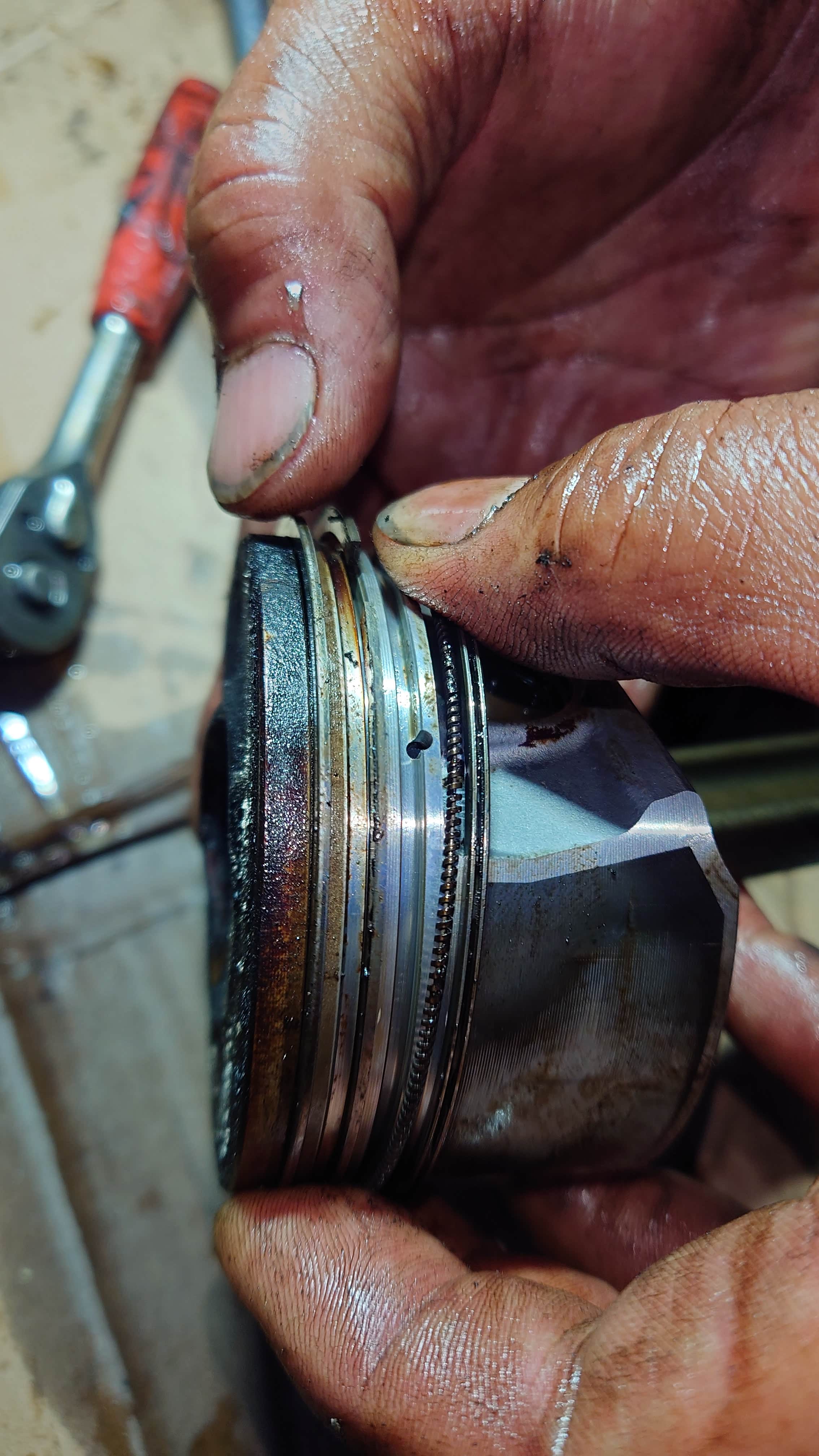 烧机油的罪魁祸首之一,活塞环,被洗开了一部分,另外还有被堵住的