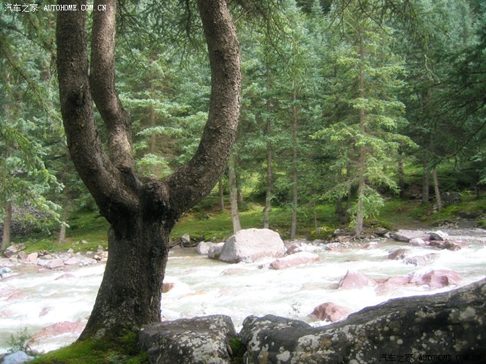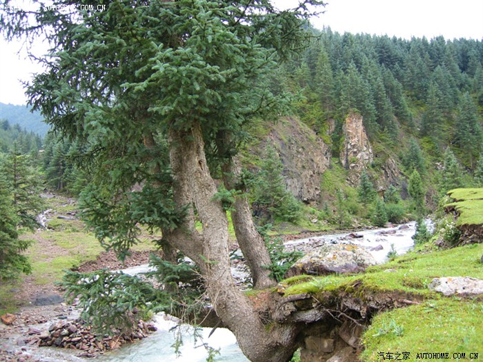 小溪边一棵独特的松树,呵呵!