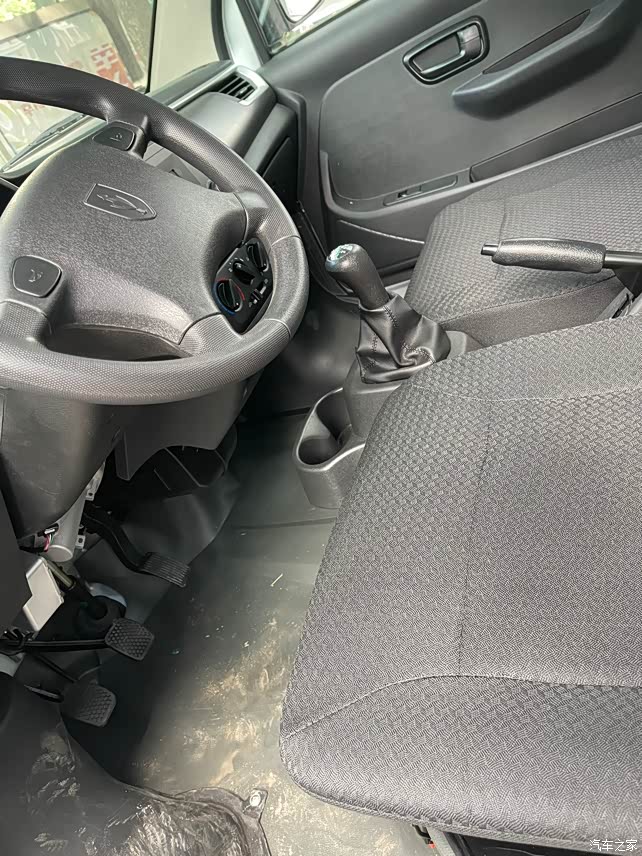 车内饰很常见的是塑料的,收音机,USB接口都有。档把下面还设计了水杯槽。坐上去感觉自己还是很舒服的,虽然单排后面还有一点点距离可以座椅往后在移动一点。