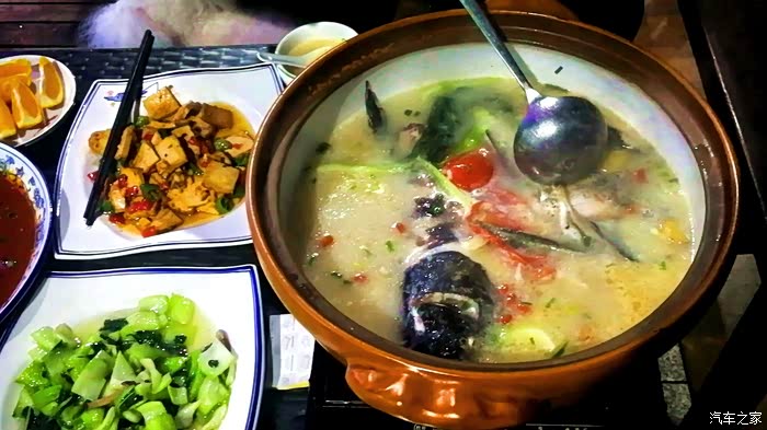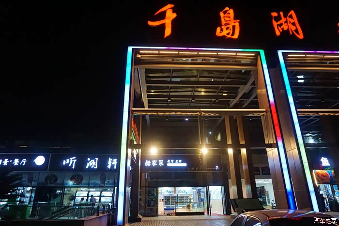 太阳落山后,千岛湖的天色黑得很快,我们乘坐酒店电瓶接驳车,先离开温馨岛上岸,再开车去镇中心的千岛湖大排档吃晚餐。