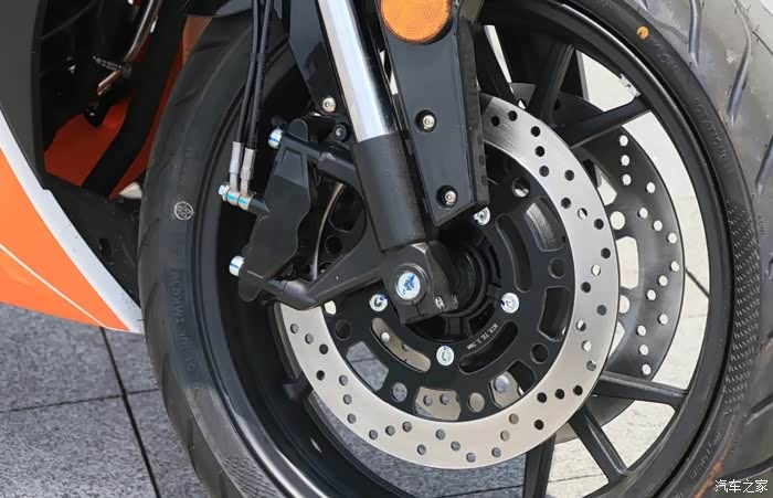在安全和舒适性配置方面,制动采用了前双碟刹和后单碟刹,并且前轮匹配了对向辐射卡钳,制动力表现非常不错。而令笔者感到意外的是该车竟然采用了前后可关闭式的ABS防抱死系统,这样的搭配给予这款车更多的操作可能,不过建议新手车友尝试。续航上,枭250虽然是仿赛摩托车,但油箱却达到了18升,基于250cc发动机,续航表现非常出色。