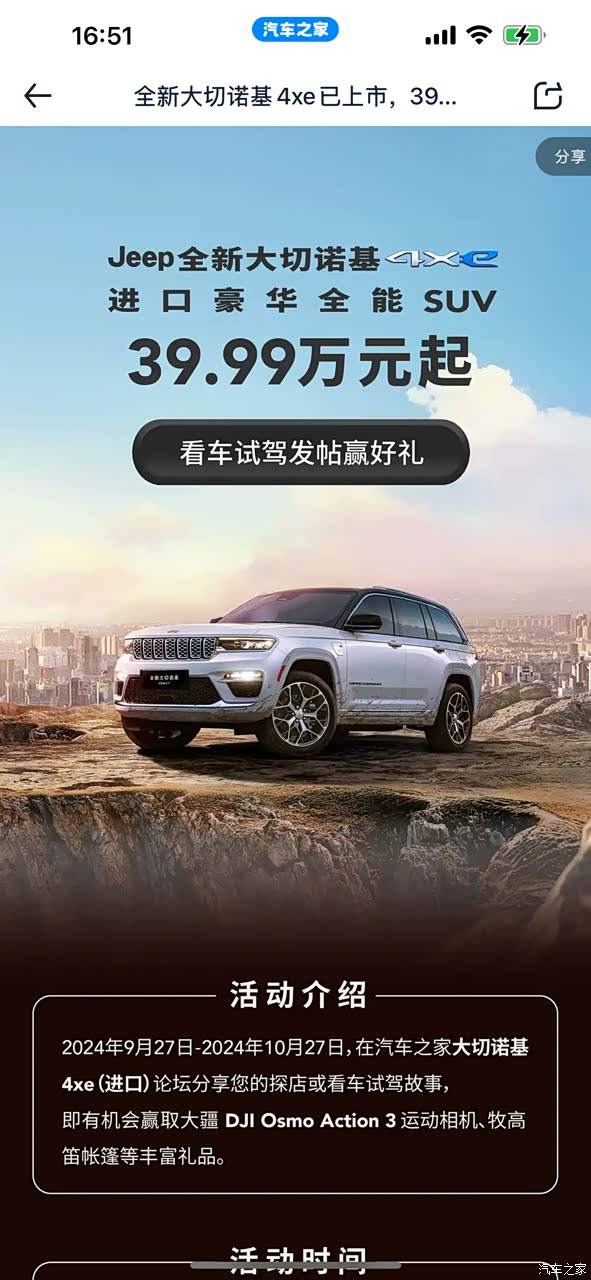 全新大切诺基4xe已上市,39.99万起