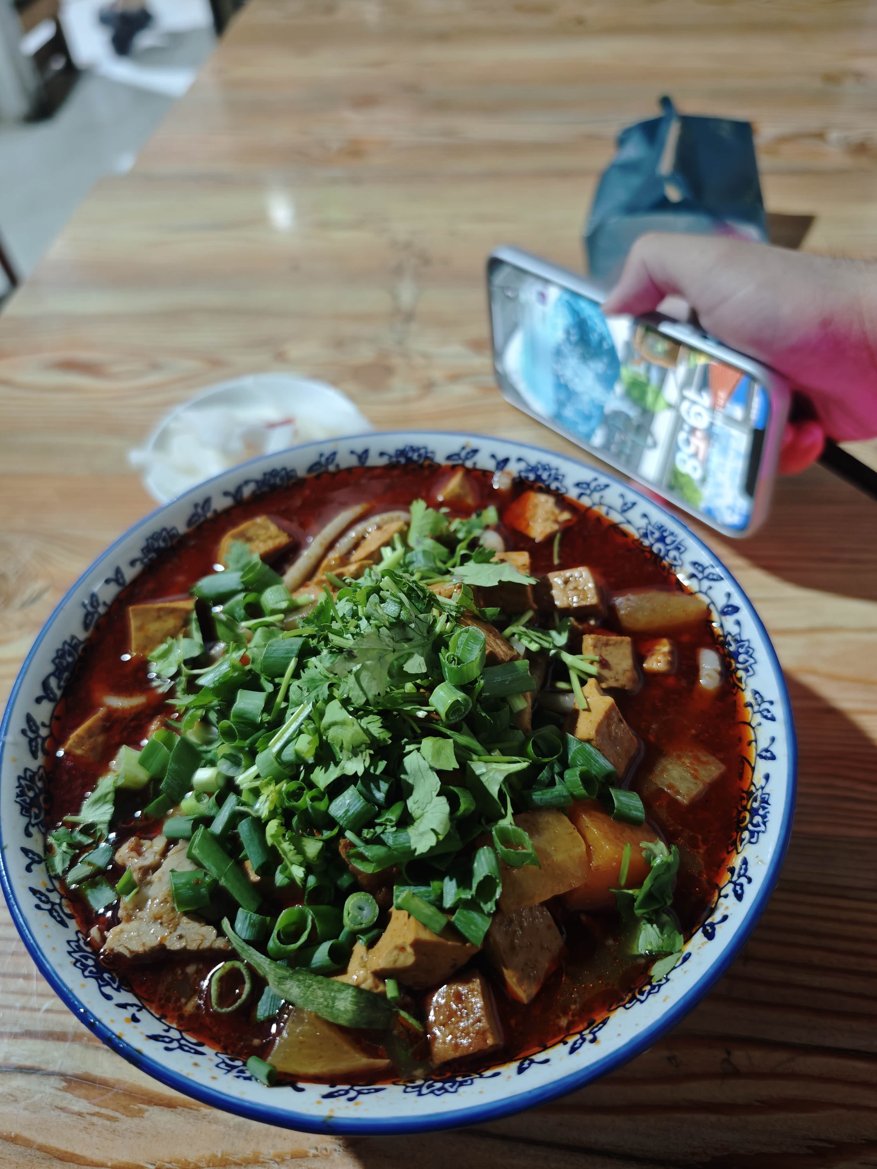 碾压在西安我吃过的所有面食。荞面饸烙。分量极其夸张,看我的6.7寸手机当参照物。。。最后本人扶墙而出,全部消灭