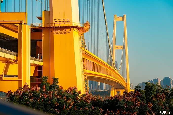 黄色的大桥非常的引人注目呀。