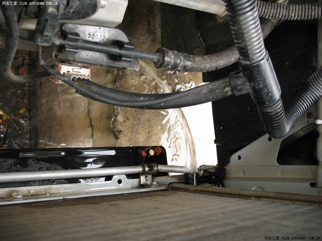注:第一次清洗:水泵带动清水循环水箱、水泵等各部件。然后熄火,把水放掉,这时看见放出来的水还是有防冻液的颜色的,不过淡色了许多。