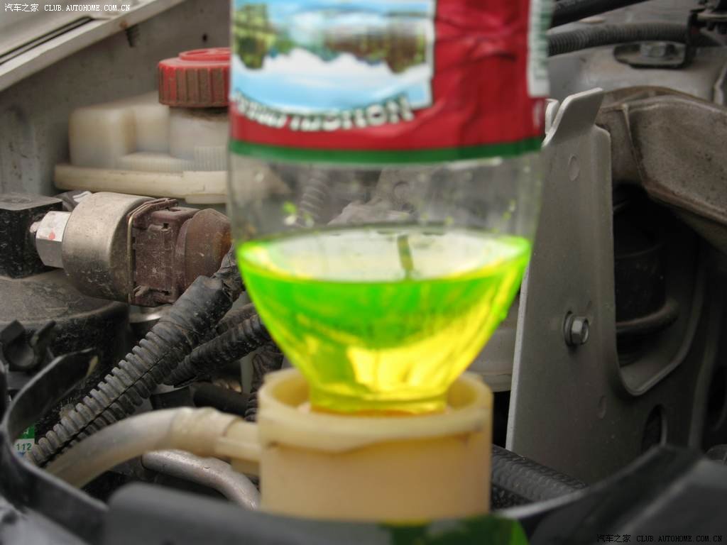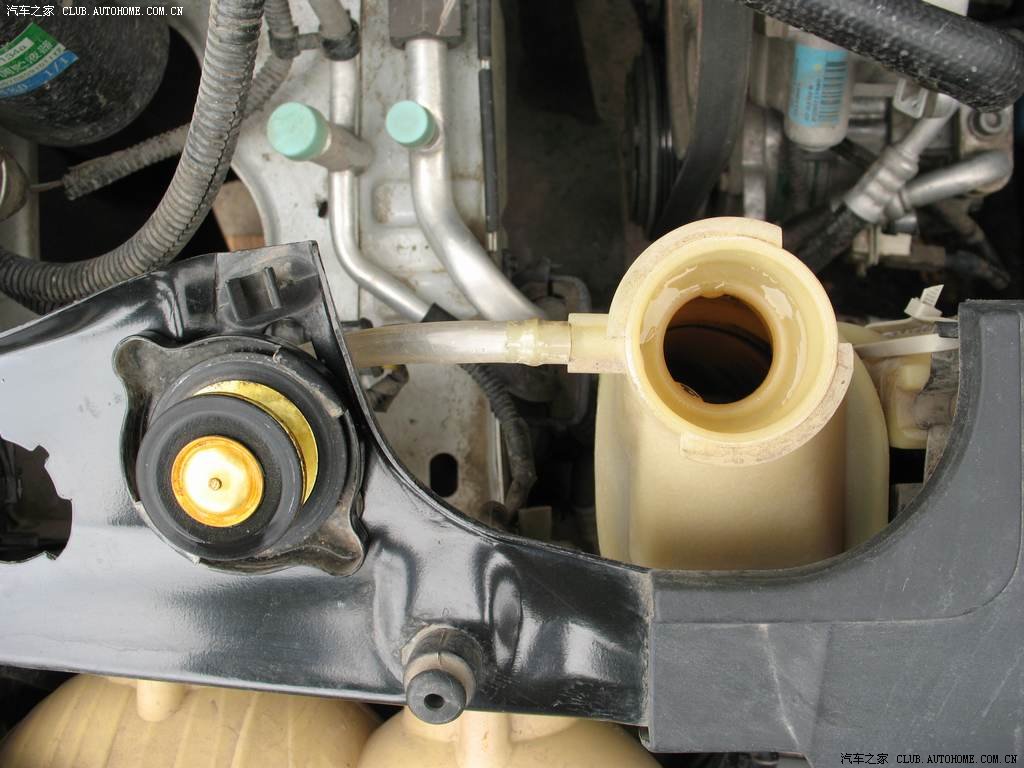 10、重复5-9的步骤,把新的防冻液从副水箱加进去,同样要做排空气。