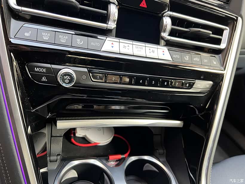 差不多11月8号车就到武汉了,然后因为出差,差不多18号才开出门,至今也就开了200多公里,不过还是有些感受的。首先操控方面,第一感觉就是大,真的有点大,开起来比之前的ghbli感觉大不少,实际感觉和家里原来的750差不多,勉强稍微小一点,以至于媳妇觉得太大,都不怎么愿意开这台车。车宽比较宽,比5系款不少,来到了1930,和7系差不多,车宽了其实在路上就会觉得大,反倒是车长对操控感受影响没那么大在市内,车长主要影响停车。然后悬挂是真的硬,比三系五系七系硬多了,甚至可以说虽然属于gt轿跑,但是悬挂确实谈不上舒适,感觉和跑车差不多。总体来说我觉得操控还行,相比一般的轿车要好,但是由于车身过大,和运动车型相比,还是要逊色不少的。再就是动力表现方面,3,0t相比四缸高马力的机子,还是平顺不少,宝马引以为傲的l6水平对置发动机的还是可以的,340p的马力,零百5.1秒和我之前的高功率ghbli感觉差不多,总体来说偶尔想激情驾驶一下还是稍微有点感觉,当然和高性能跑车相比还是差的太远,基本上刺激的感觉是没有的。最后就是排气,其实排气本来我就没有抱太大希望,毕竟国6b加入了颗粒捕捉器,比宝马以前的6缸运动型车型相比肯定要差。事实上声浪也确实不咋地,唯一有的亮点就是高转数快速收油还是有点啪啪啪的回火声,只是这个噼里啪啦的声音也确实谈不上好听,只是比较好玩而已。声浪给人感觉就是转速高了之后穿入驾驶舱的就是高转速发动机的嘶吼夹带着一部分排气管带来的比较单薄的声浪。最后就是说一下这台车我就小小的整备了两点,下面的图片我也有拍,我买了老款8系被简配的水晶音量旋钮,自己用热熔棒拔下原装的换上,再就是我觉得后排中控上面的type c接口的凹槽很丑,在网上定制了一块钢琴烤漆的盖板给遮起来,我觉得协调多了,然后就是22中期款我这款简配了车上热点和无线充电,车上热点倒是无所谓,只免费半年后期也不可能续费,无线充电大家也可以看到我自己买了个最小的无线充电板+弯头电源线解决了这个问题。总体来说自己这些小整备还是相当满意的。