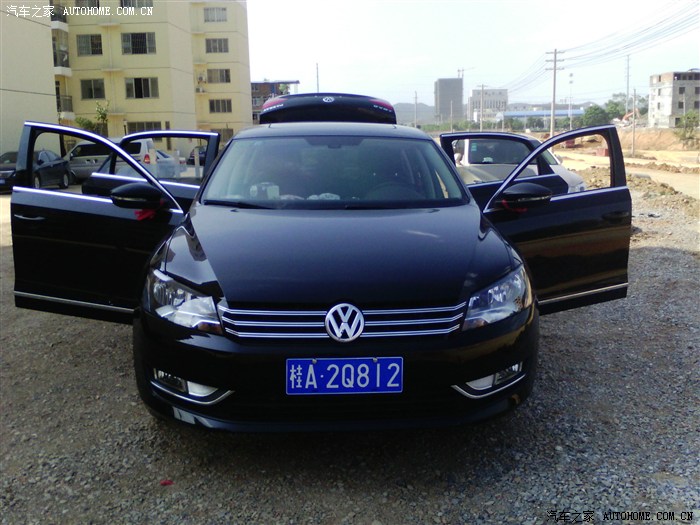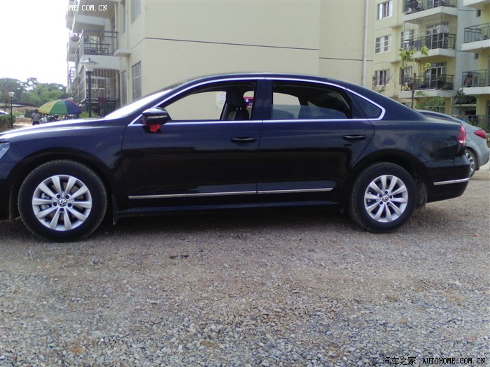 本人驾照是09年拿的,一直没有碰过车,偶尔开下公司的皮卡车拉拉货,快到换证了,家里终于松口了说要买车。LD认为大众老品牌了,必须信得过,有事没事就自己去看上海大众和一汽大众,经过他一番比较,还是选着朗逸。在这之前,本人也关注了很久,本人看上的就是新帕萨特。在LD看上朗逸后不知道他在哪里看见了帕萨特,最终转向心思帕萨特,就告诉我去看帕萨特,就这款车了(当时我心里暗爽了好久,这不是正合我心意嘛)。4月初,我跟老婆去4儿子店看车,老婆跟我一眼就看上了白帕,原因很简单,就是白色帕萨特跑在路上的不是很多,买个车不至于弄个街车吧。结果一问,店里就一辆白外米内展车,我跟老婆坚决不同意买个展车,就再等4月底车展看是否有白外黑内1.8尊荣版的。到了4月底,电话咨询了4儿子店是否有白外黑内1.8尊荣版,得知有一辆在途,说是一个星期车到店,当时马上杀去4儿子店谈价下定,当时优惠2W(区域指导价比厂家指导价高2万,相当于没有优惠,日),送垃圾脚垫,挡泥板。最后就是等车了。等车的一个星期就是煎熬啊,期间每天一个电话给销售看看车在哪里的,最后5月4日销售打电话说车到了明后天就可以提车。当时哥高兴坏了,5号下午马上赶回家6号提车(当时在出差)。结果5号下午回到家准备好钱了就等第二天提车了,晚上6店销售打电话过来说车卖别人了,叫我换颜色,听到这个消息后全身瞬间僵硬,过了一分钟缓过神来,直接叼杠销售(此处省略10W字),最后直接跟他说退订。艹,艹,艹。。。。。。万恶的加价买车,万恶的车展冲量,第一次被别人放鸽子那么大,心痛死了。5号一晚上睡不着啊,第二天拉着我堂弟带我去退订,顺便再逛逛其它4儿子店看是否有车,6号看了一天车,回家跟LD说没有白外黑内8T尊荣就买黑的吧,买车全权交给LD了,自己7号就要出差了。结果5月9日,LD来电话说提了量黑外黑内回来。11号回家看见了感觉还可以了,目前心态是有车开就行了,不用下雨天开这个小电驴出去被雨淋,有车开总能遮风挡雨。等咱赚大钱了再换土豪车。不多废话,上图了,,,,,,垃圾联箱手机照的,各位车友将就看了,车牌不挡了,看见打个招呼。