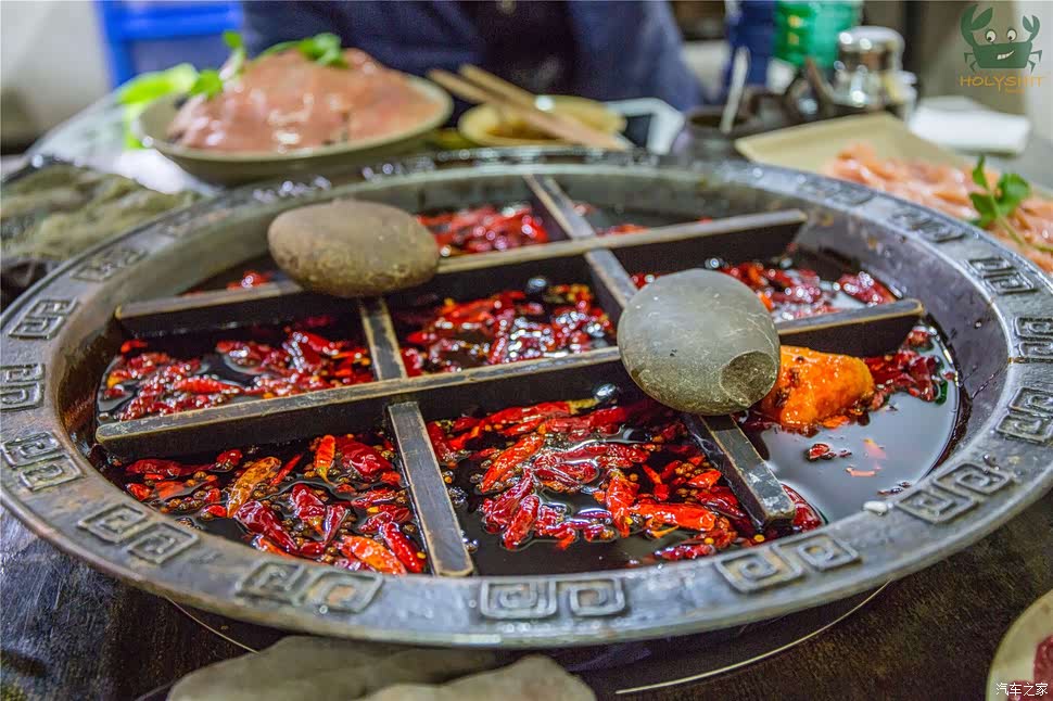 九宫格,辣椒,牛油是火锅的标配。至于这两块鹅卵石,我也不知道有什么作用,可能就是为了美观或者是能将烫好的肉在上边抹几下刮去多余的油吧。