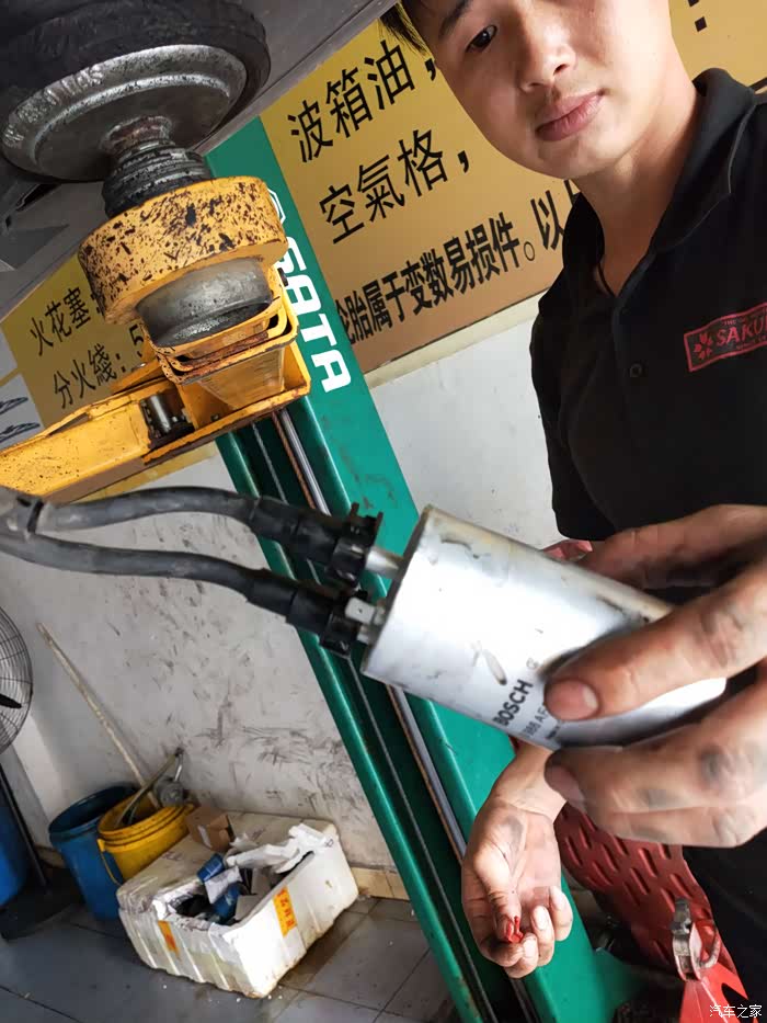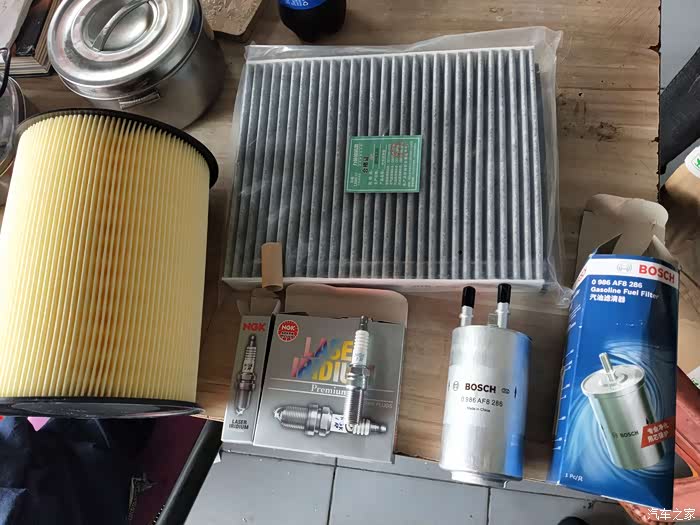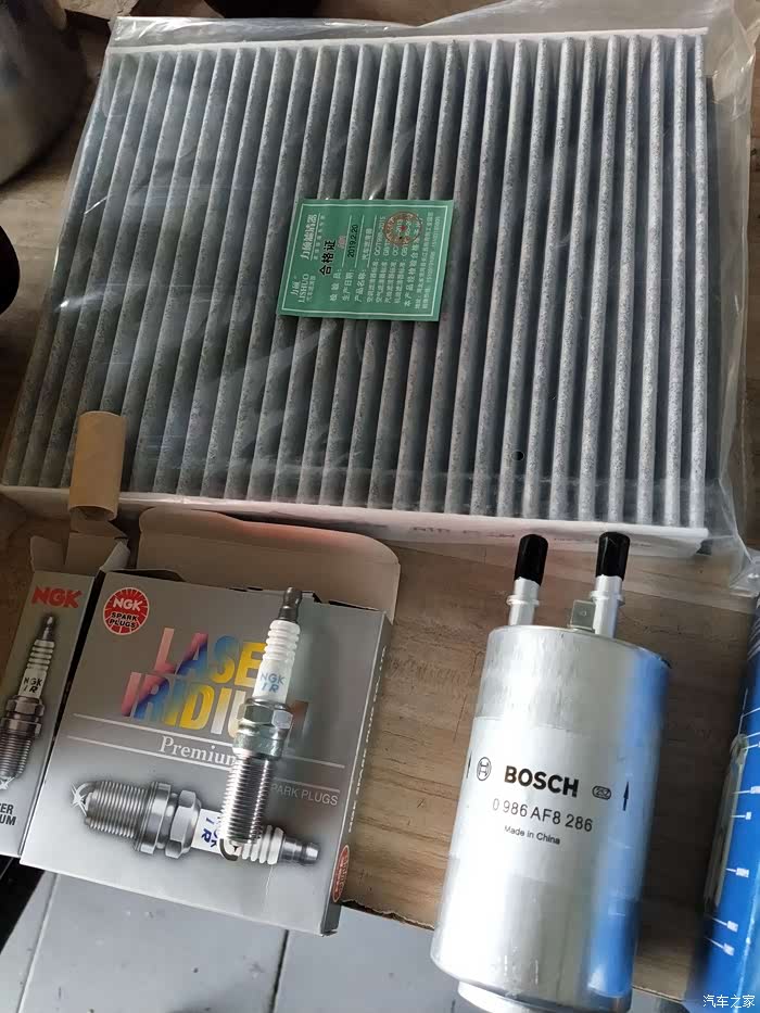 今天主角保养项目:更换四滤,四滤指机油滤、汽油滤、空气滤、空调滤,更换全合成机油、4个火花嘴、清洗节气阀门、全车例行检查等;