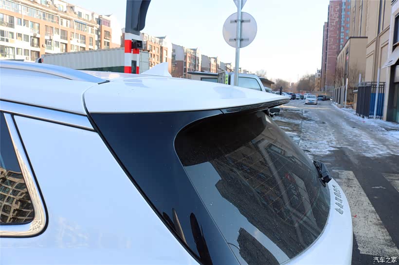 车色的侧面属于隐藏式的腰线设计,若隐若现的感觉,挺神秘的,还有转角的位置,过度很柔和,看起来就很舒服的,小尾翼弧度刚刚好,下面也有一个刹车警示灯