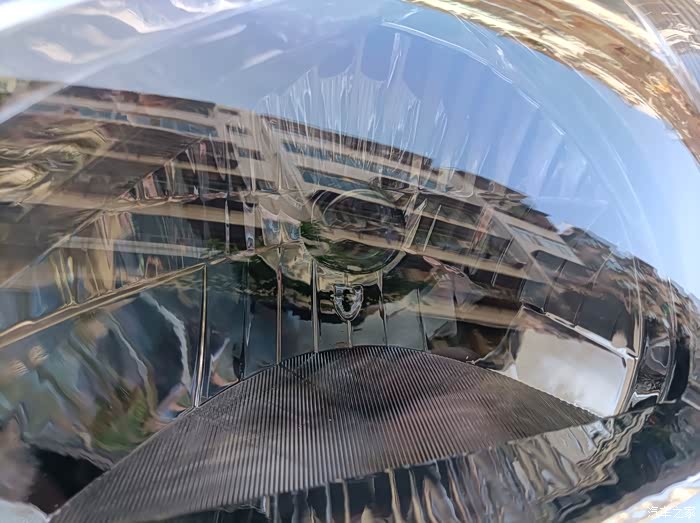 透镜上面的塑料纸还没有撕掉,我先装上看看效果怎么样。安装着看着还不错。