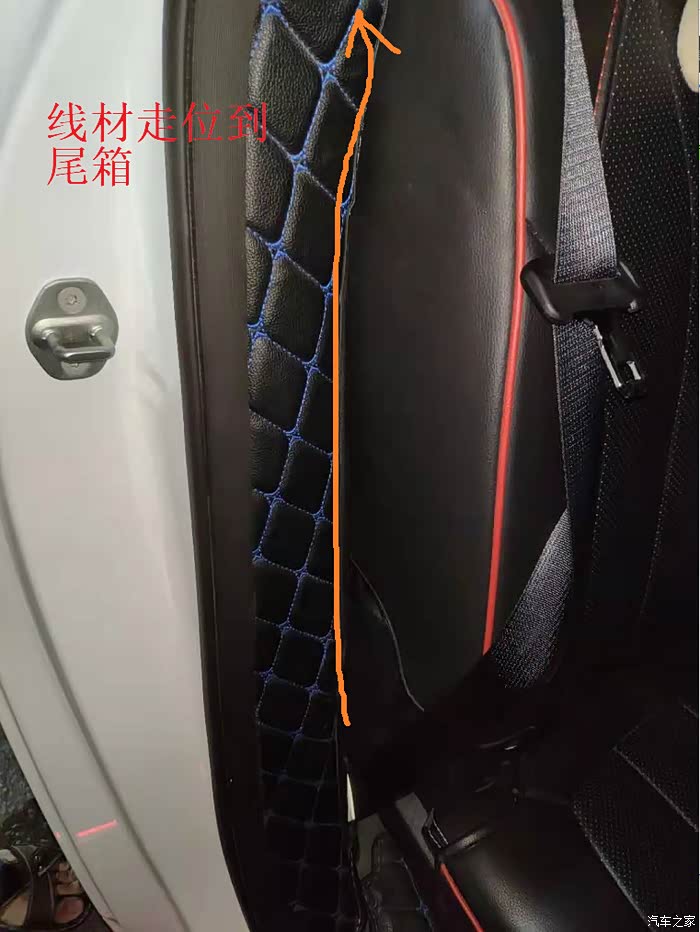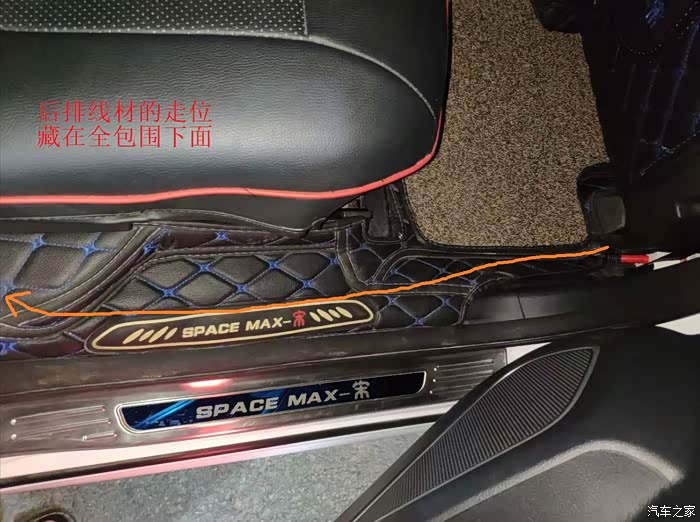 线材到了后排,还是走的全包围下方(线材全程套高温阻燃尼龙编织网管,保护线材不被直接摩擦)