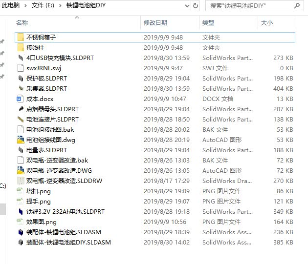 下面是电脑里面,3D设计的电池箱和要安装在电池箱上的电器件文件清单: