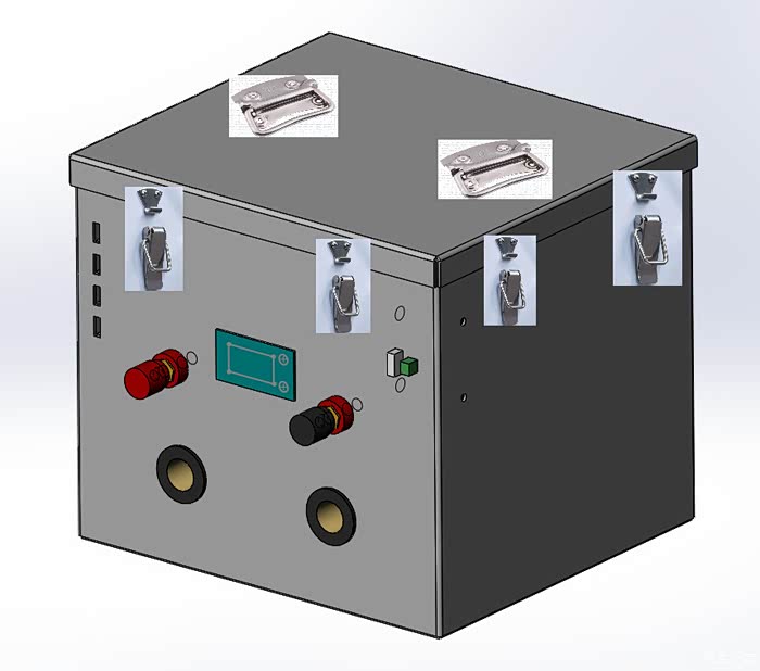 四周安装8塔扣+盖板安装2个提手,预期的效果(懒得画塔扣和提手的3D图了,直接粘贴示意一下,哈哈
