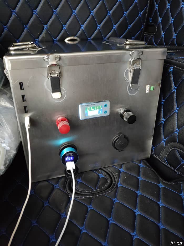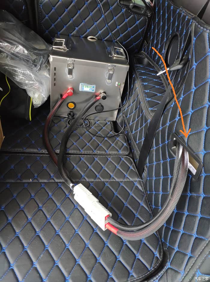走暗线,从全包围里面穿线到尾箱,通过插头连接做好的磷酸铁锂副电瓶: