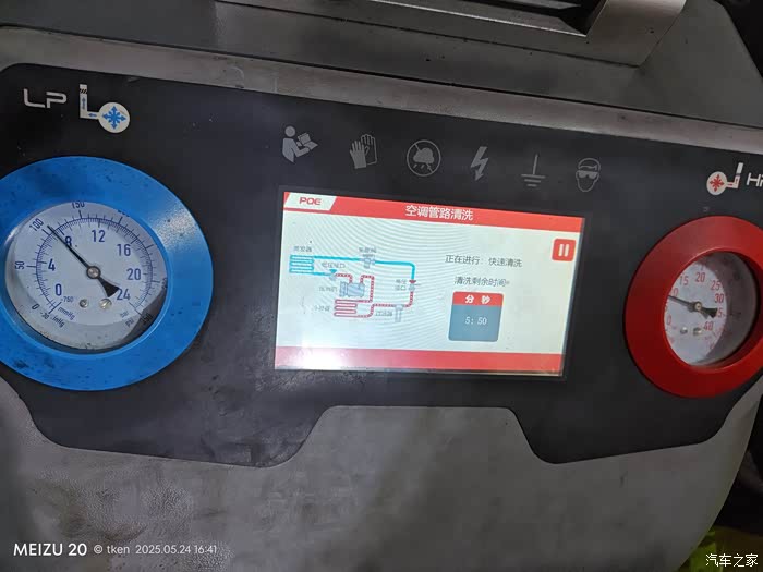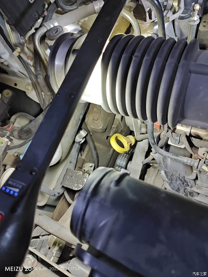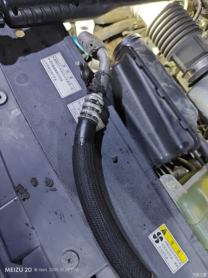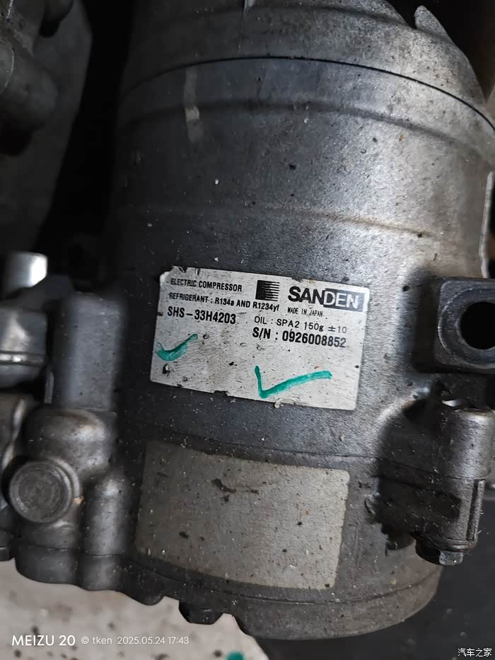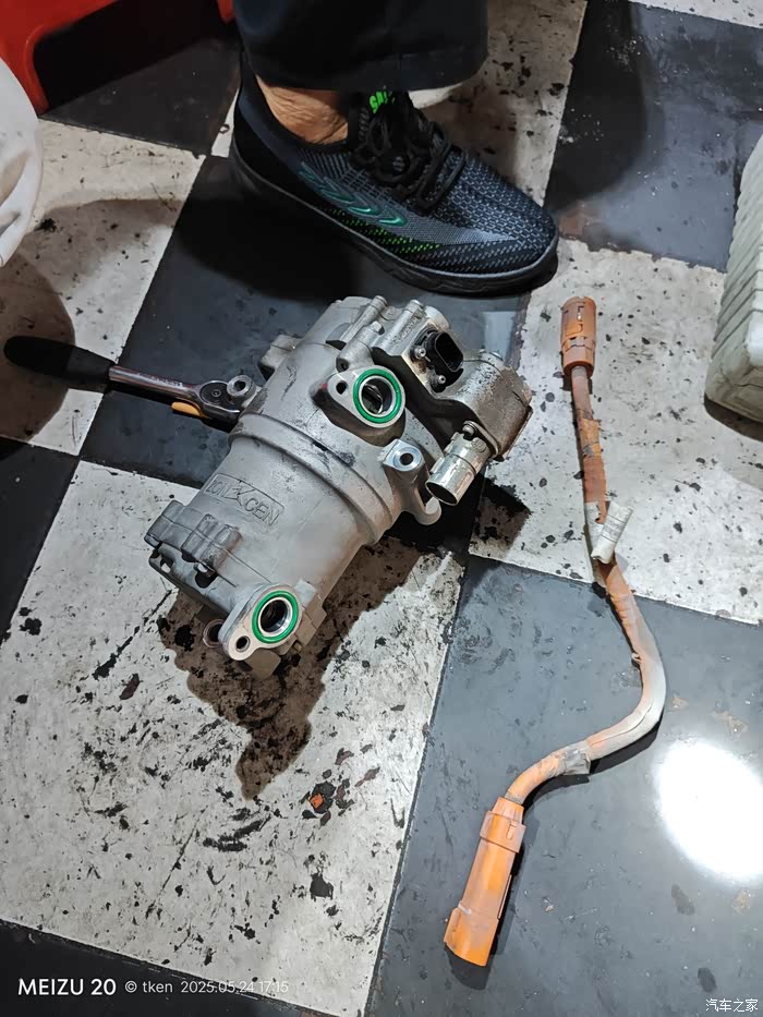 过程没拍照,就是检测雪种没了,补了两瓶一百多,师傅看到空调低压管有漏油痕迹,推测是这里漏,两年前加过雪种,4月还能开空调,五一就不制冷,神奇