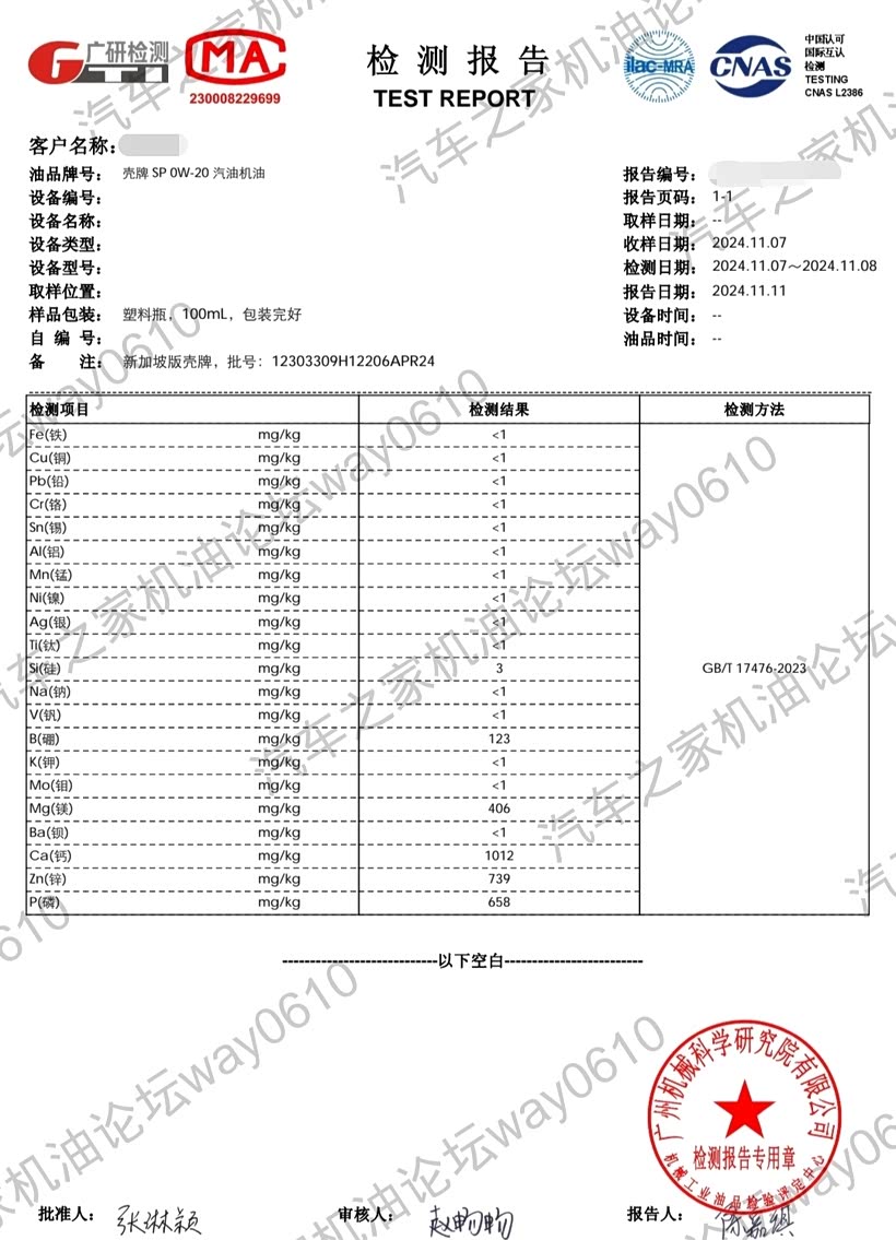 通过实测可以看出,新加坡版壳牌的各种元素含量正常。