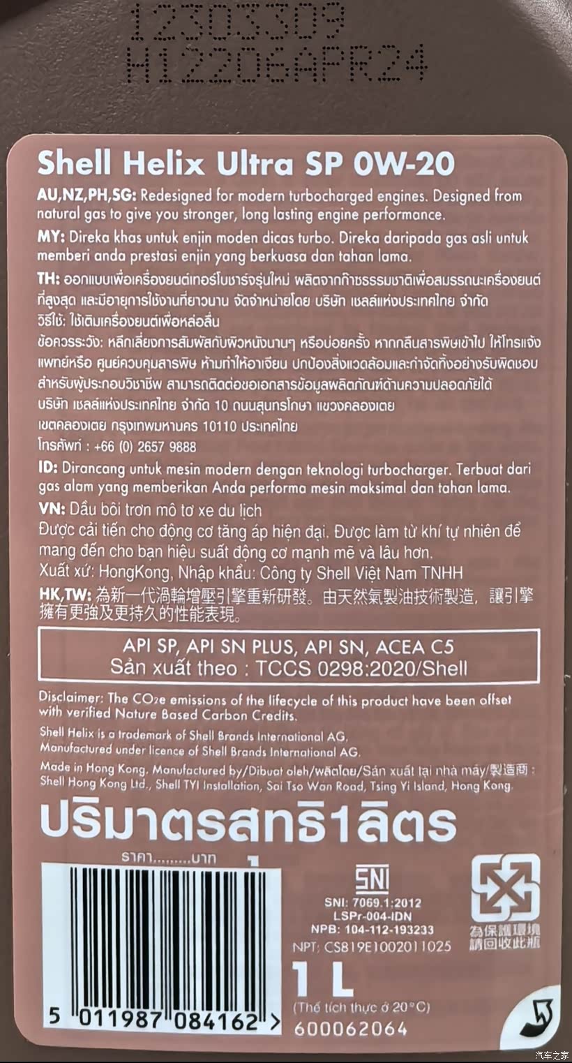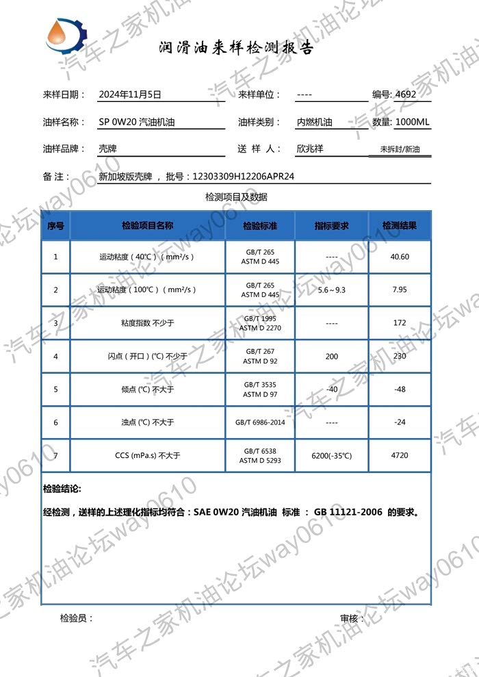 ,今天分享一个新加坡版壳牌0W-20的基础7项指标,对比一下港版,看看有什么区别。