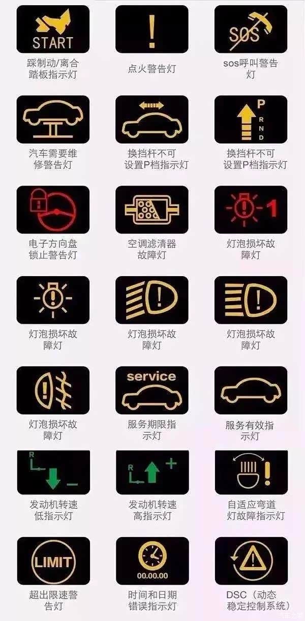 最爱的老铁们!我们又见面了,今天小白给大家分享下故障灯亮时所说明的问题,发现有好多新司机,都不会关注故障灯,或是不知道故障灯亮起时,是表示的什么,作为一个老司机,故障灯对我们来说特别重要,比如说胎压监测灯亮时,一定要时时关注胎压状况,不然时间长了,可能会引起爆胎!还有行驶时发动机故障灯亮时,一定要找个安全的地方停车,检查,或是专业的和4s店,处理检测,一定不要盲目的行驶,容易发生事故!!!好了,那小白就给大家分享下,首先我们要对仪表盘上的指示所示要知道,最起码的名称。