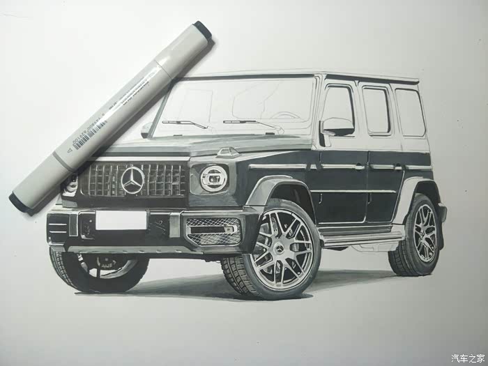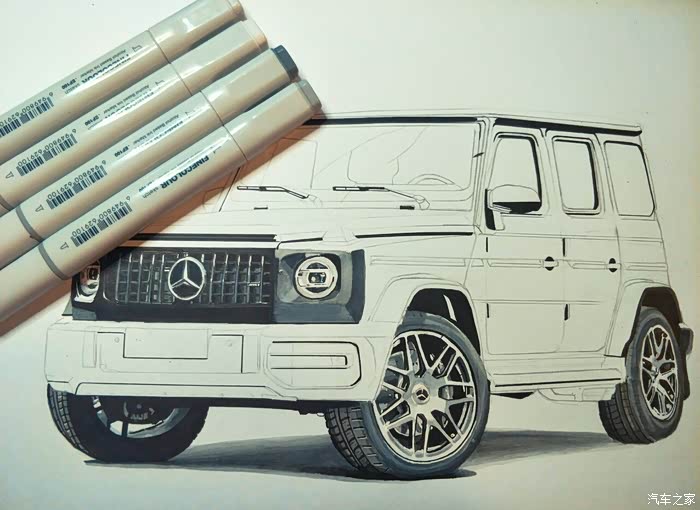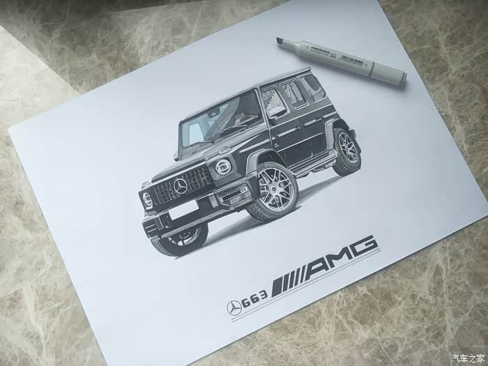 喜欢画车的我又来报道了。今天给大家分享的是奔驰AMG g63,其实应该很早画完的,可是中途马克笔没墨,等了两天快递,然后再加上一天只能画半个小时左右,所以更新的比较晚。如果没有意外的话,之后我会加快更新速度。这幅画是我的一个舅舅订的,所以画的比较粗糙,毕竟太紧张了
