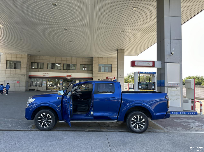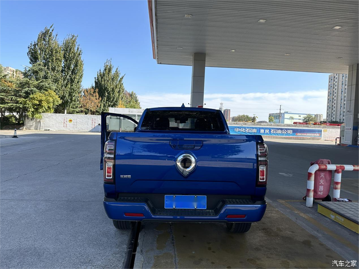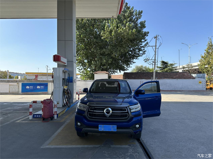前脸不难看吧,很气派,一点也不小气,带着这个大家伙来加油了,这么大一辆车百公里9个油多点,综合看起来比同价位的还要省一点,柴油本来就便宜,开皮卡不用在意油耗就很爽。