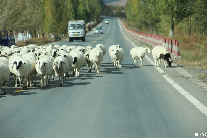 离开S204之后有一段路视野非常开阔,远处悠闲的羊群,如果是在夏天来这里,满眼绿色又是另一番景象