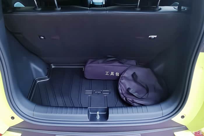 海鸥虽小,作为一台纯电动小型车,四轮四角的设计和车内空间的优化,使得这台车的乘坐空间和储物空间还是很不错的。海鸥的后排座椅靠背可以翻折放倒,最大储物空间能达到930L,比不少三厢轿车强不少。在后排座椅状态正常的情况下,实际空间水平也足够日常使用,除了平时购物放一些东西,多数情况下,以上下班通勤代步的小海鸥的后备箱还是比较整洁利落的。