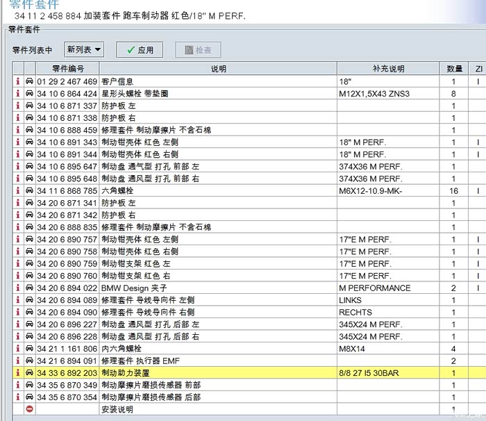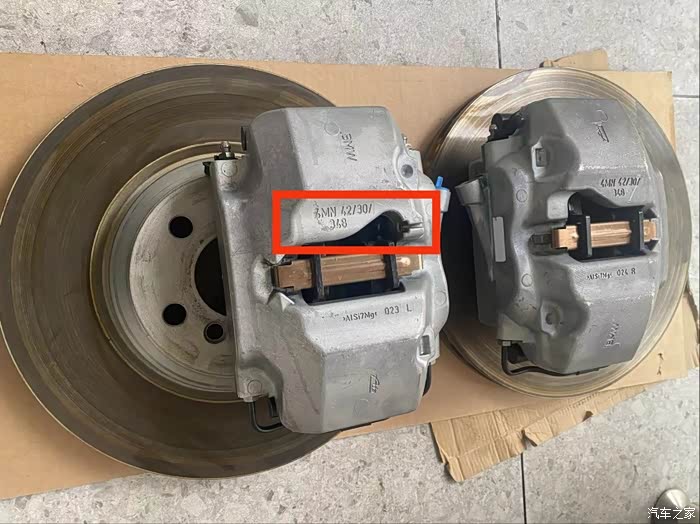 不论是348卡钳,374卡钳,395卡钳,在我眼里都是MP卡钳,放进套装里面就叫MP卡钳?原配的就叫M40i卡钳?我就是通过大佬单独订购的前轮红色卡钳,零件号也就是和3、4MP套装里面的前轮制动器的零件号一样的。自己就单独定了卡钳,自己搭配的盘皮。