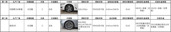 (2)ATE配套的四活塞,基本是进口30i动力配备和新能源未选配刹车系统的,比如630i,730Li,X5 30i,IX3,i3,i4。技术参数和上述的布雷博四活塞一样,4*42/348/30,但是和530Li卡钳的区别主要是适配的盘子,ATE配套的盘子基本都是轻量化双金属的盘子,也就是合头那儿有一圈铆钉的盘子,而530盘子是彻底的一体盘。