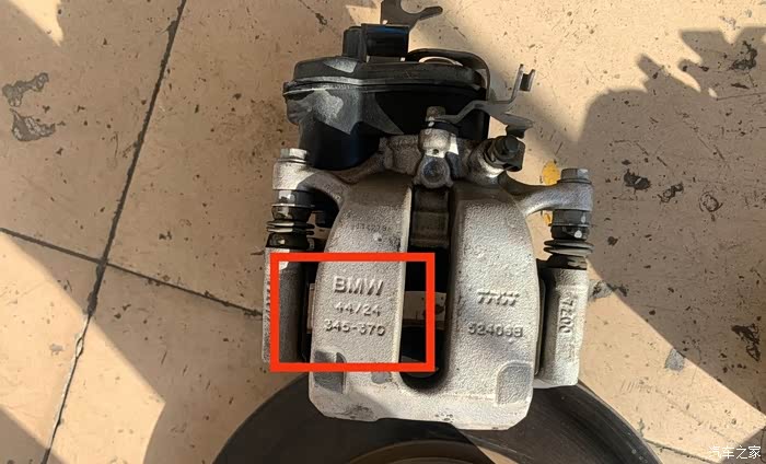 ② 我称呼为TRW40i后卡钳,活塞直径44mm,适配盘子的规格,345-370/24,一样的分泵,有两款支架,分配适配345和370的盘子,仔细看看就能发现,44mm活塞直径,345/24的盘子,从这两个技术参数上来看,和3系4系的MP套装的后卡钳参数一样。我的325Li也是用过TRW40i后卡钳的,重点说说这两款参数一样的后卡钳,参数虽然一样,但是其实两款的盘皮摩擦面积不一样,电子驻车的电机不一样,TRW的更静。