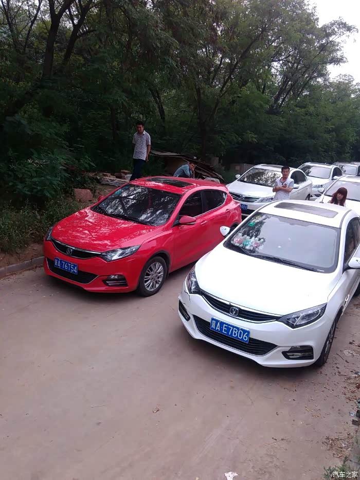 骚红和大白的逸动XT。