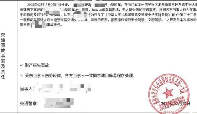 发现俺们同一小区邻居,很多难听的话也就没有说出口啦,毕竟抬头不见低头见的,对方在路边第一时间报警,大概十几分钟,交警赶到,拍照定责,路口有监控我录制的行车记录视频没用上,交警开具事故认定书,对方全责!双方签完字以后就在车上等待保险公司的电话!