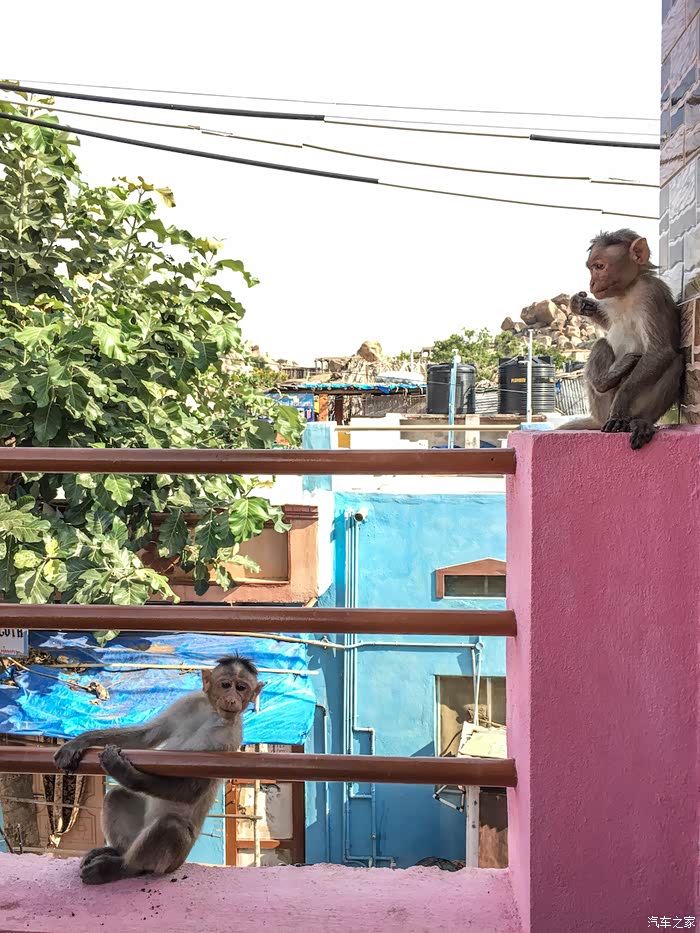 住在Hampi,就像是住在动物园。不同的是,并不是你闯入了动物世界,惊扰了它们的生活,而是你住在这里,它们也住在这里,自然和谐。