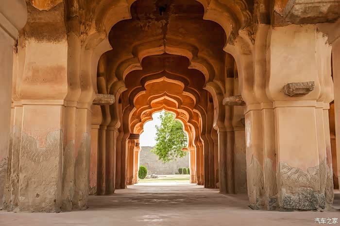 向南四公里外是皇家宫殿的遗迹,大部分已经损毁,只留地基。仅存的Lotus Mahal,皇后娘娘的夏宫,精致的廊柱还依稀能看出昔日的辉煌。
