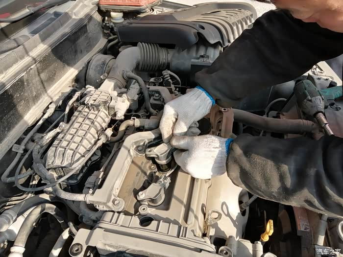得到我同意维修后,师傅给出维修方案:取用一个新点火线圈,按着顺序,从一缸开始,轮流试验一遍,看看到底是哪个缸出了问题,这样不用盲目更换一整套点火线圈,以达到省钱的目的。