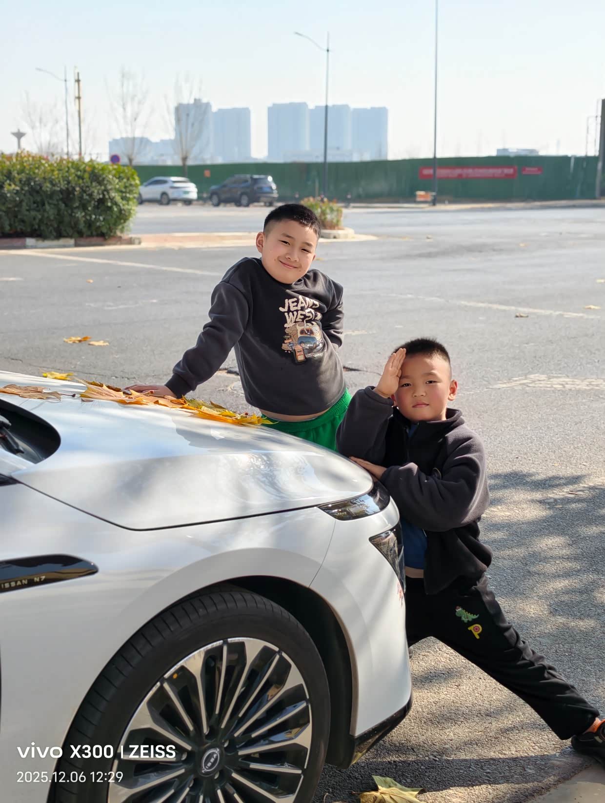 这一天的游玩结束后,我们驶向一家东风日产的4S店给我们的N7洗了一次车。看到车表被冲洗干净后,光泽真的非常讨喜,心情也跟着愉悦了许多。回家的路上我还特意给孩子拍了几张车旁的照片,当了他们的“摄影师”。