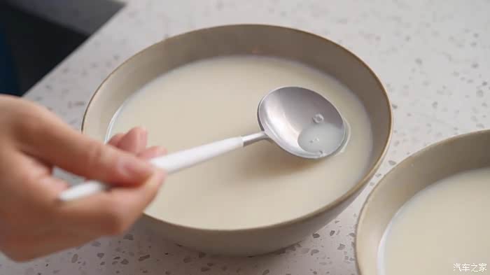 - step 3 -倒入分装的碗中凝固,表面的气泡可以用勺子撇掉