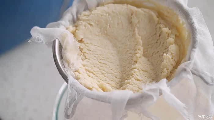 - step 3 -倒入锅中煮开,用细纱布叠在网筛上过滤出豆渣,豆渣可以加入到各种面食中,炒鸡蛋或炒豆腐都可以
