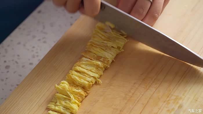 - step 3 -一个鸡蛋打散,平底锅里摊一个蛋皮,切细丝待用