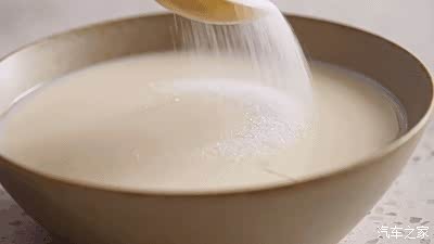 - step 2 -3g葡萄糖酸内酯和清水溶解,慢慢倒入豆浆中搅拌均匀,这个动作一定要慢哦,倒太快的话容易结块就变成豆腐渣了。大家如果买的市售豆浆,成分表里除了黄豆和水,不要有其他的成分哦