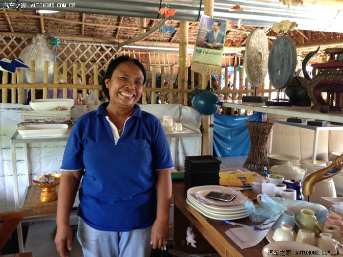 瓷器店老板娘,非常喜欢小店里的餐具,有些是宜家在泰国生产的。老板娘极力推荐:beautiful,像我这样的家庭煮妇实在难以拒绝,买了一堆盘子。Gavin笑我,说大老远买一堆盘子回来。后来,老板娘送我一套杯子,非常享受在小店里买盘子的过程。老板娘不太懂英文,我们比比划划,最终成交。离开的时候,老板娘给我一个热情的拥抱,并给了我电话号码,让我有时间给她打电话,热情而可爱的大婶~~
