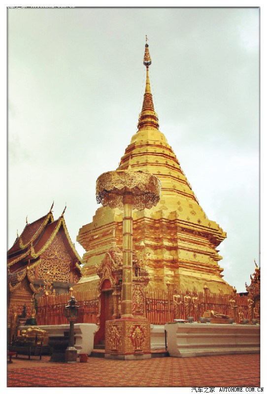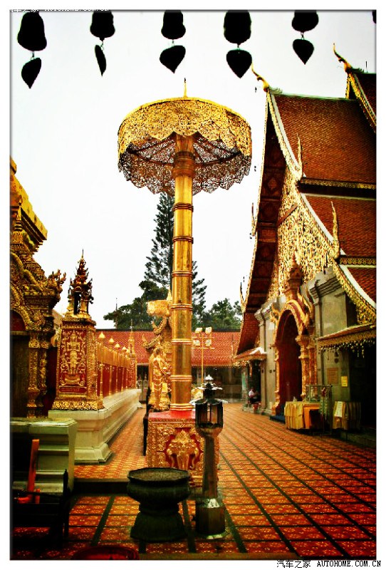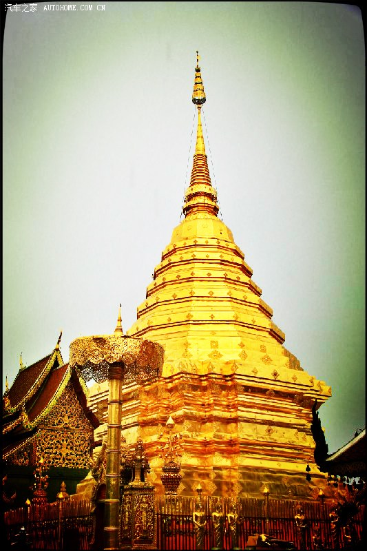 寺庙里最上镜的镀金佛塔,顶上是五层保护伞。