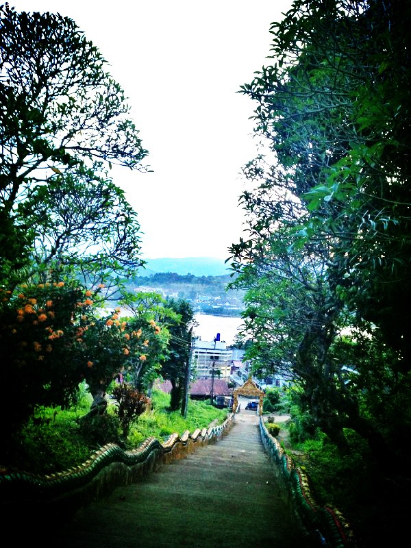 龙神那伽(艺术中常见的虚构大水蛇)台阶从码头对面向上延伸至君考马尼拉寺。