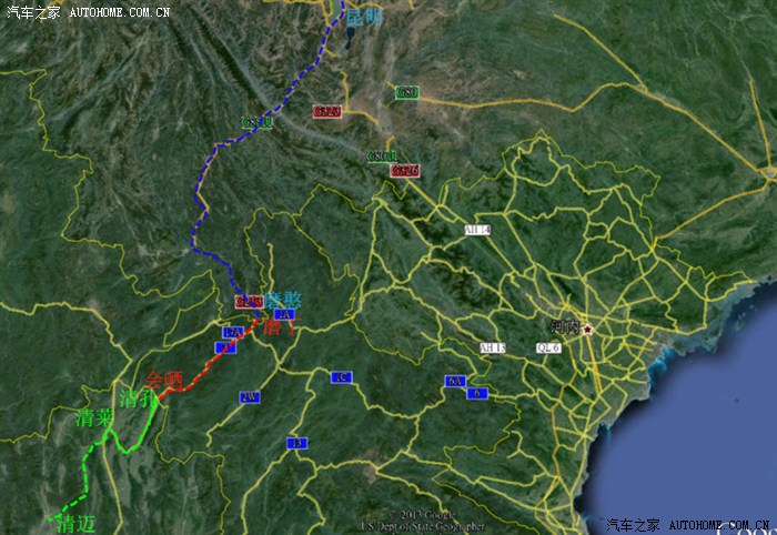 《出行路线》:昆明<---->磨憨口岸<---->老挝磨丁口岸<---->老挝会晒<---->泰国清孔<---->清莱<---->清迈