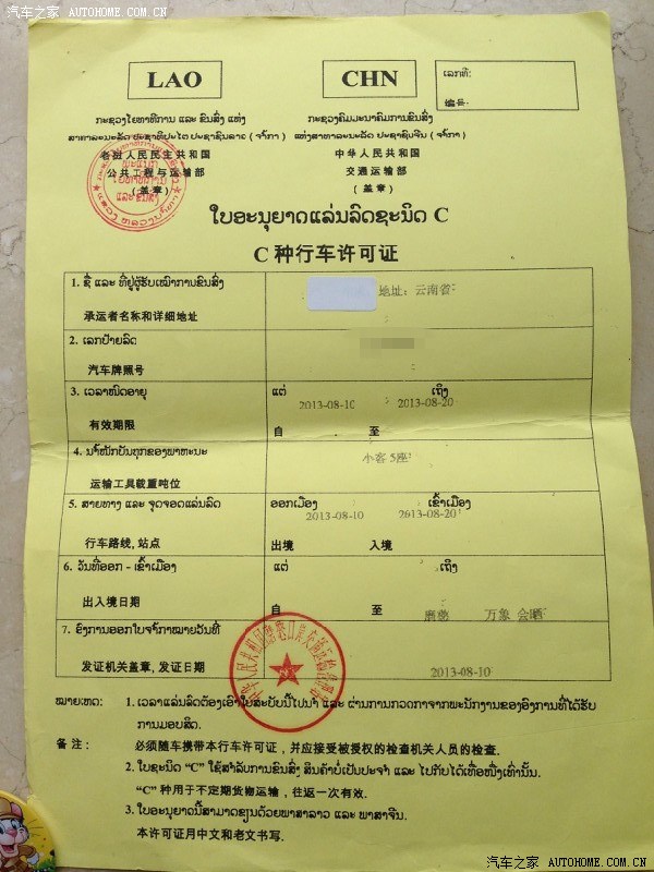 到达会晒,办理车辆和人员入境手续,注:办理老挝落地签证。详见“办理出入境手续”。