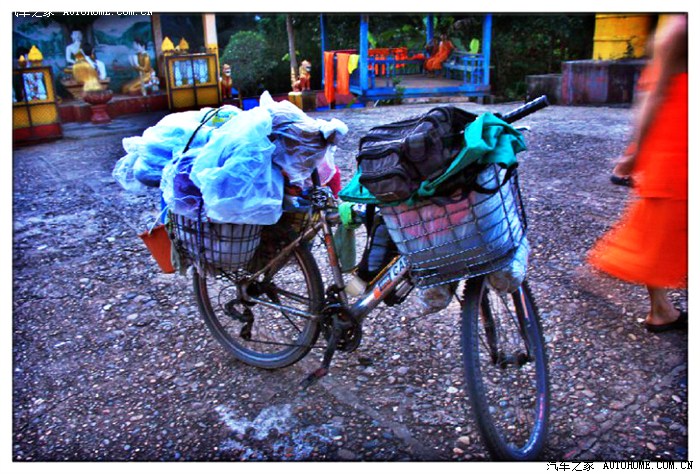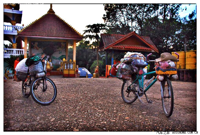 观赏寺庙时,看到两辆自行车,上面堆满了日常生活用品。原来是两位自行车爱好者,一位是马来西亚人,一位是巴塞罗那人。他们骑自行车环游世界。巴塞罗那人说一口流利的中文~~~他们本想从磨丁口岸入境到中国,但是没拿到签证,不允许自行车单程过境。他们只好改变行程。