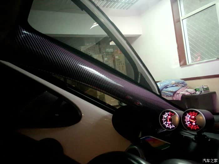 A柱贴碳纤维贴纸。